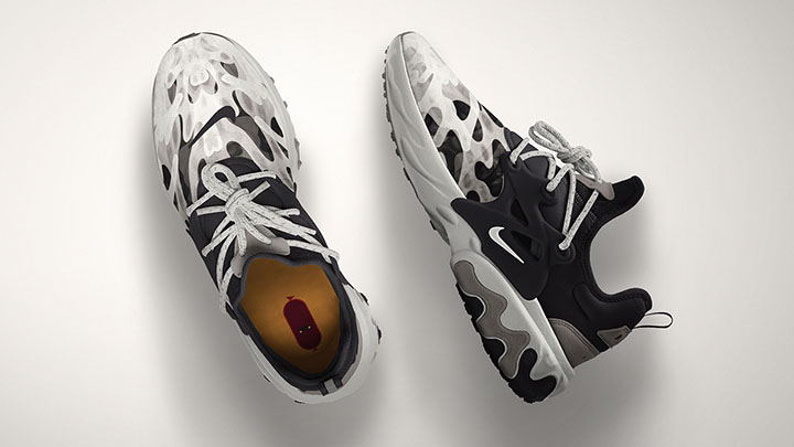 This quick strike project was briefed by the Nike By You brand team to take part in a greater initiative surrounding the React Element 55. The idea was to expand on the shoe’s namesake, the atomic element Caesium 55. This radioactive element is highly unstable. The volatility of this element became the anchor point for the project. This was interpreted in two ways. First, inspiration was taken from HAZMAT suits required for working with volatile materials. These suits often incorporate vibrant, highly visible colors. These colors were applied to a leno mesh, and accented with graphic webbing details, reminiscent of hazard stripes. The second interpretation was the effect that a radioactive material would have on its environment. Here sun-bleached, desaturated colors were applied to a crinkle nylon material accented by Regrind components.